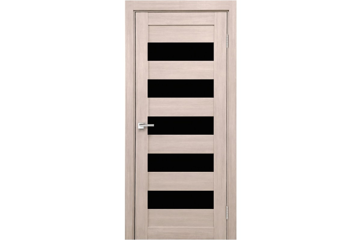 Дверь Верда X-4 экошпон Остекление Лакобель черное тон Кремовая лиственница