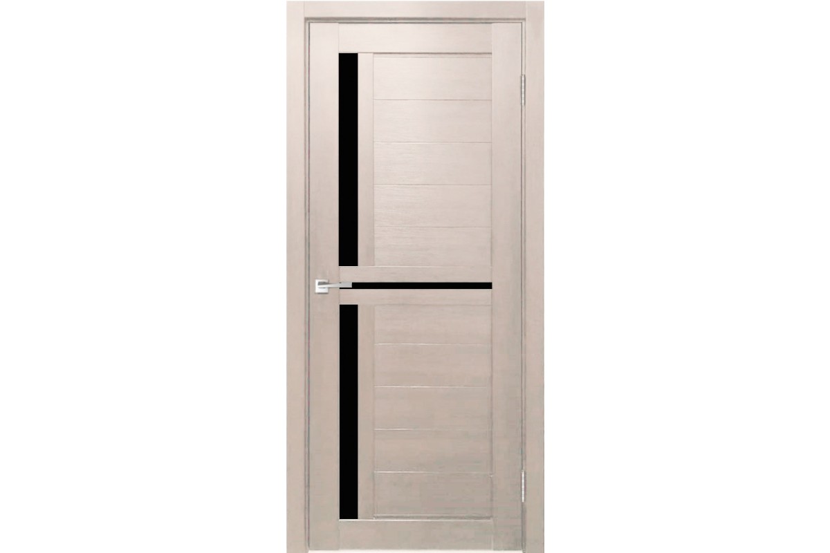 Дверь Верда Z-1 экошпон Остекление Лакобель черное тон Кремовая лиственница